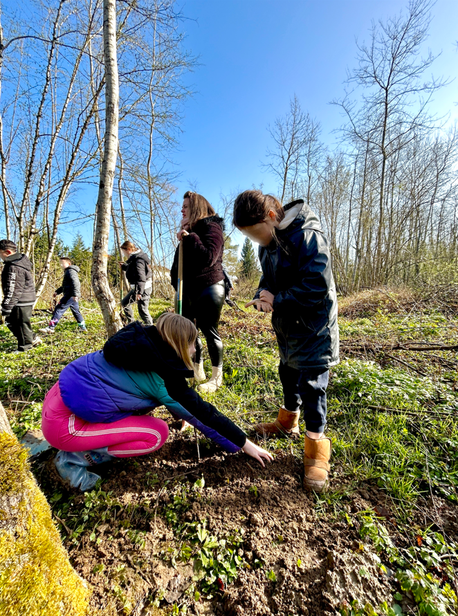 Équipés de pioches, ils se sont initiés à la plantation de différentes essences : merisier, sorbier des oiseleurs, noisetier ou encore chêne.